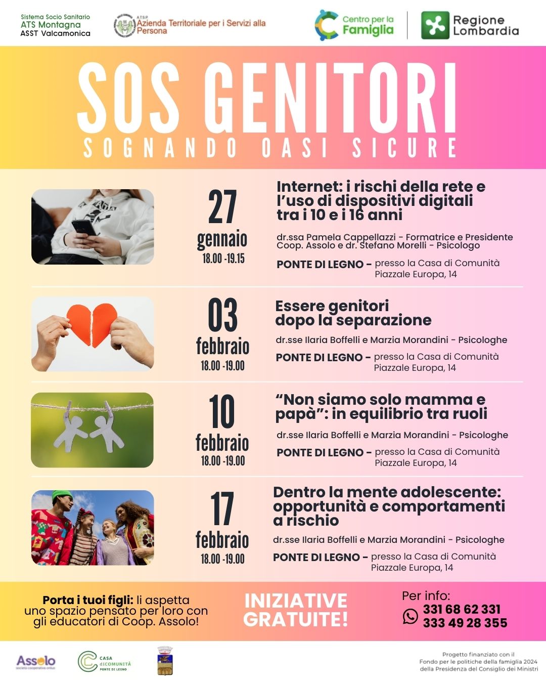 GLI INCONTRI SI TERRANNO PRESSO LA CASA DI COMUNITA' DI PONTE DI LEGNO